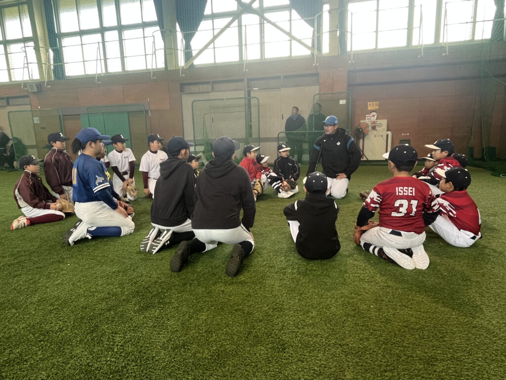当日は、北海道日本ハムファイターズベースボールアカデミーから牧谷宇佐美コーチ、谷口雄也コーチを講師に迎え、旭川市内の少年野球7チームに所属する小学4~5年生、計53名が参加。約2時間半にわたり、体の使い方や捕球・打撃の基本を中心に、熱心な指導が行われました。