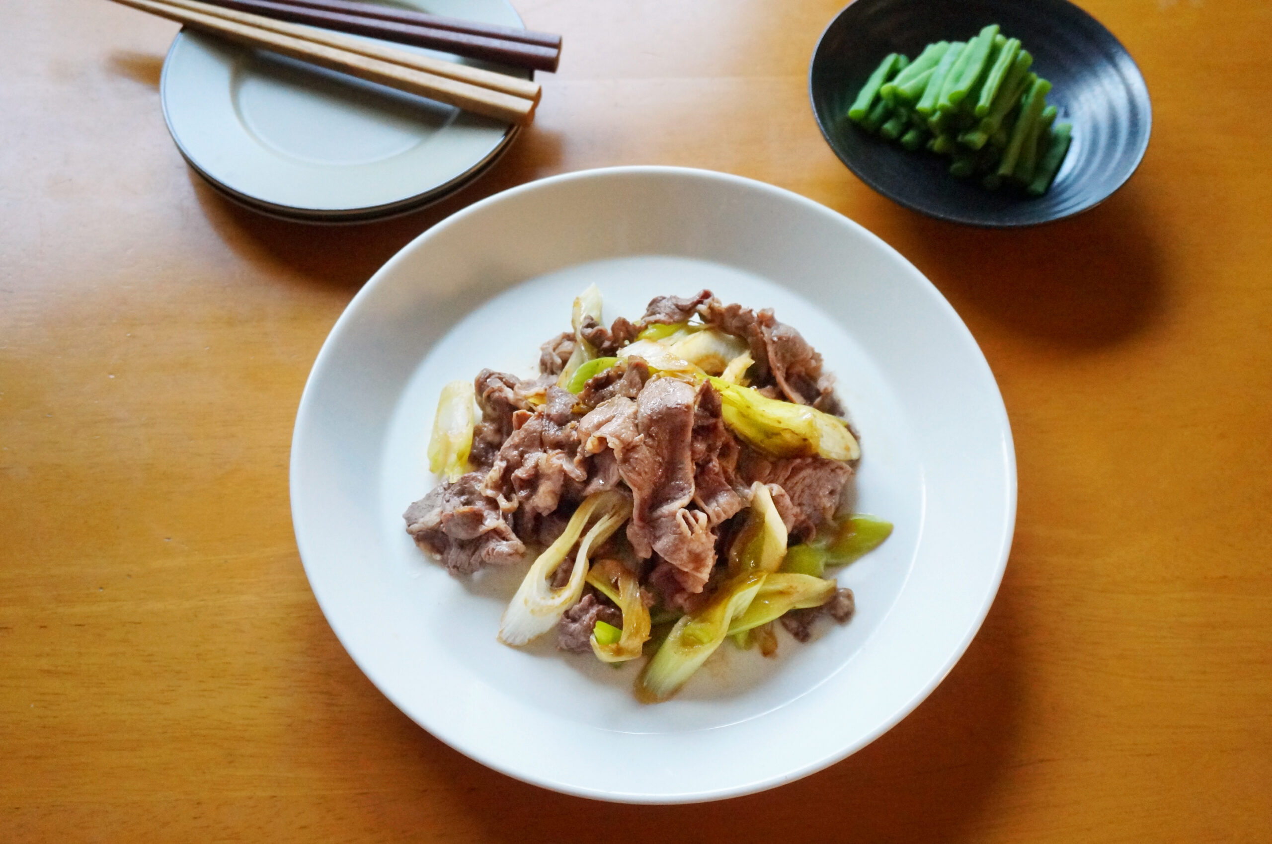 10分牛肉と長ネギのすき焼き風炒め